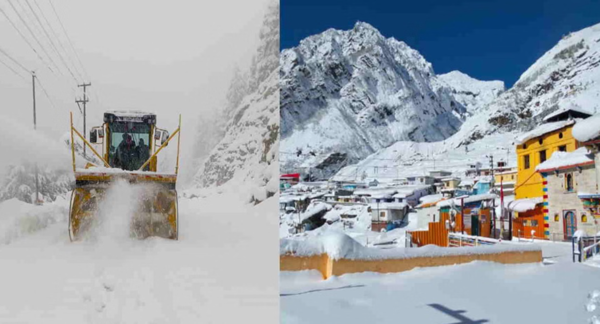 भारी बारिश-बर्फबारी से चमोली बेहाल, हाईवे बंद, बदरीनाथ धाम बर्फ की चादर में ढका