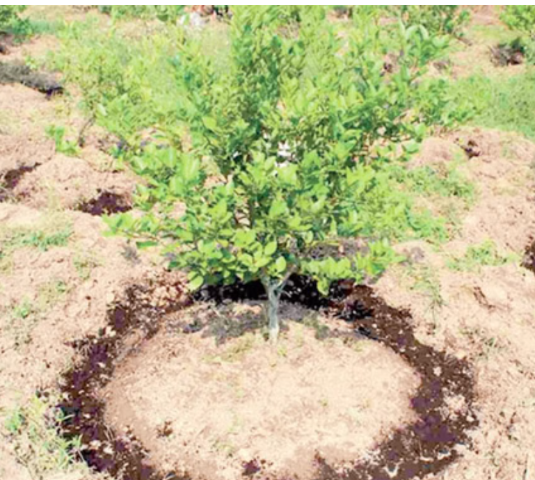 पौधरोपण के बाद पौधे के ऊपर एक फीट लंबा खोखला बांस या पाइप डाला जाता है। इससे पौधे की जड़ें सीधे गहराई की ओर विकसित होती हैं, जहां अधिक नमी उपलब्ध रहती है। इस तरह, पौधे को ऊपर से कम पानी देने की जरूरत होती है और वह प्राकृतिक रूप से नीचे की नमी से पोषण प्राप्त करता है।