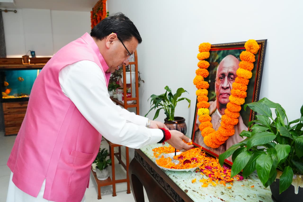 देहरादून। मुख्यमंत्री पुष्कर सिंह धामी ने लौह पुरुष सरदार वल्लभभाई पटेल जी की जयंती के अवसर पर मुख्यमंत्री आवास में उनके चित्र पर पुष्प अर्पित कर श्रद्धांजलि दी। इस अवसर पर मुख्यमंत्री ने कहा कि सरदार पटेल ने अपने अदम्य साहस, दूरदृष्टि और राष्ट्रनिष्ठ नेतृत्व से देश की अनेक रियासतों को एक सूत्र में पिरोकर अखंड भारत के निर्माण का मार्ग प्रशस्त किया।