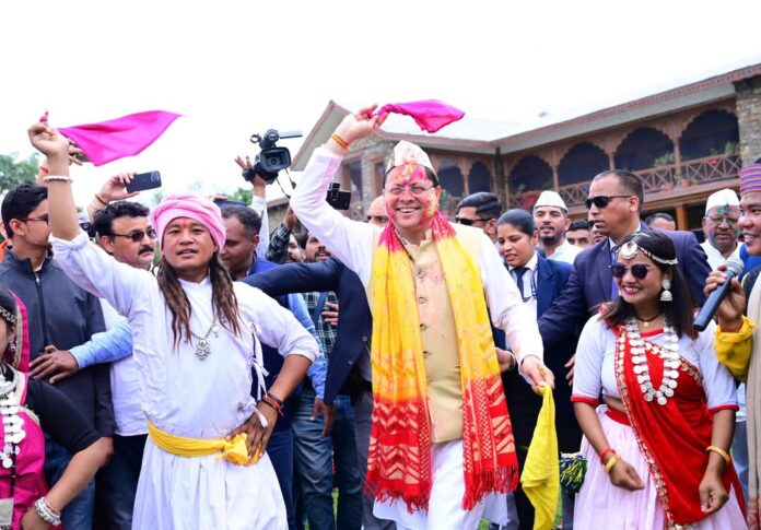 मुख्यमंत्री पुष्कर सिंह धामी लोक कलाकारों के संग होली के रंगों में पूरी तरह से रंगे नजर आए। उन्होंने विभिन्न दलों के कलाकारों के साथ काफी समय बिताया। उनके साथ वह थिरके भी। ढोल, थाली और अन्य पारंपरिक वाद्य यंत्रों पर हाथ भी आजमाया।