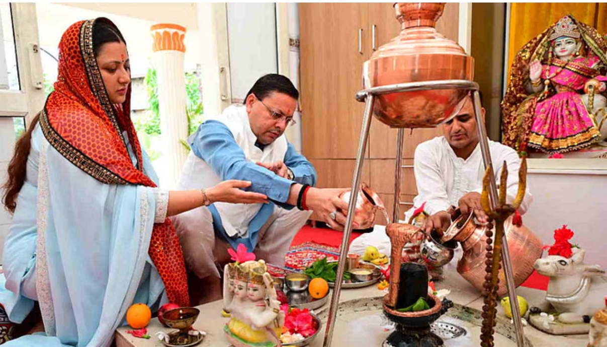 मुख्यमंत्री पुष्कर सिंह धामी ने भी पत्नी गीता धामी के साथ भगवान शिव का जलाभिषेक किया। उन्होंने प्रदेशवासियों की खुशहाली, स्वास्थ्य और समृद्धि के लिए प्रार्थना की।