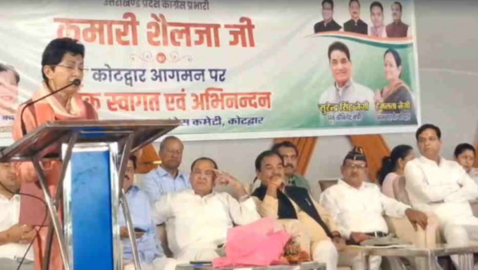 कोटद्वार में कांग्रेस की ओर से आयोजित कार्यकर्ता सम्मेलन में पार्टी नेताओं ने भाजपा सरकार पर जमकर निशाना साधा। कार्यक्रम में उत्तराखंड कांग्रेस प्रभारी कुमारी शैलजा मुख्य अतिथि के रूप में पहुंचीं और जनसभा को संबोधित किया।