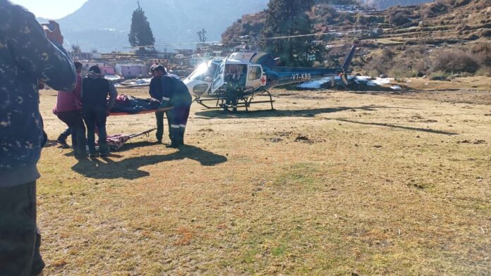 मुख्यमंत्री श्री पुष्कर सिंह धामी के संज्ञान में यह मामला आने पर उन्होंने जटिल और दुर्गम परिस्थितियों को देखते हुए चमोली जिले के जिलाधिकारी संदीप तिवारी को मरीज को सकुशल घर तक पहुंचाने के लिए हैली एंबुलेंस की व्यवस्था करने के निर्देश दिए। मुख्यमंत्री के निर्देशों पर जिलाधिकारी ने सरकार के सहयोग से संचालित अखिल भारतीय आयुर्विज्ञान संस्थान ऋषिकेश की आपातकालीन निःशुल्क हेली एंबुलेंस सेवा से विशेष अनुरोध किया गया। जिलाधिकारी ने बताया कि डुमक गांव काफी दुर्गम क्षेत्र में है और सड़क से 06 किलोमीटर के पैदल दूरी पर स्थित है। इस पर एम्स ऋषिकेश में हैली एंबुलेंस के नोडल अधिकारी डा0 मधुर उनियाल ने विशेष केस बनाते हुए मरीज को 25 दिसंबर को हैली एंबुलेंस से डुमक गांव भेजा गया।