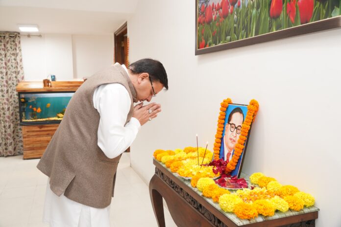मुख्यमंत्री पुष्कर सिंह धामी ने बाबा साहेब डॉ. भीमराव अंबेडकर की पुण्य तिथि पर मुख्यमंत्री आवास में उनके चित्र पर श्रद्धा सुमन अर्पित कर श्रद्धांजलि दी।