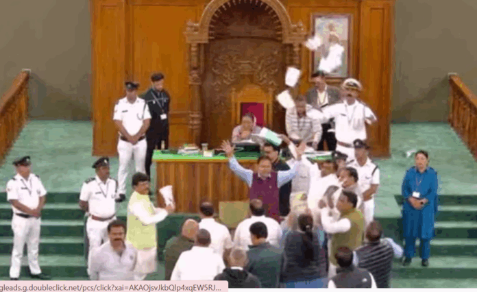 विपक्ष का हंगामा, कागज फाड़े गए, पोस्टर लहराए
