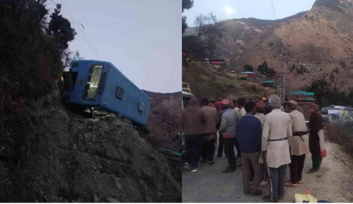 सुनकुंडी गांव के पास हादसा, सड़क से नीचे खाई की तरफ पलटी बस, 30 यात्री थे सवार, मची चीख पुकार
